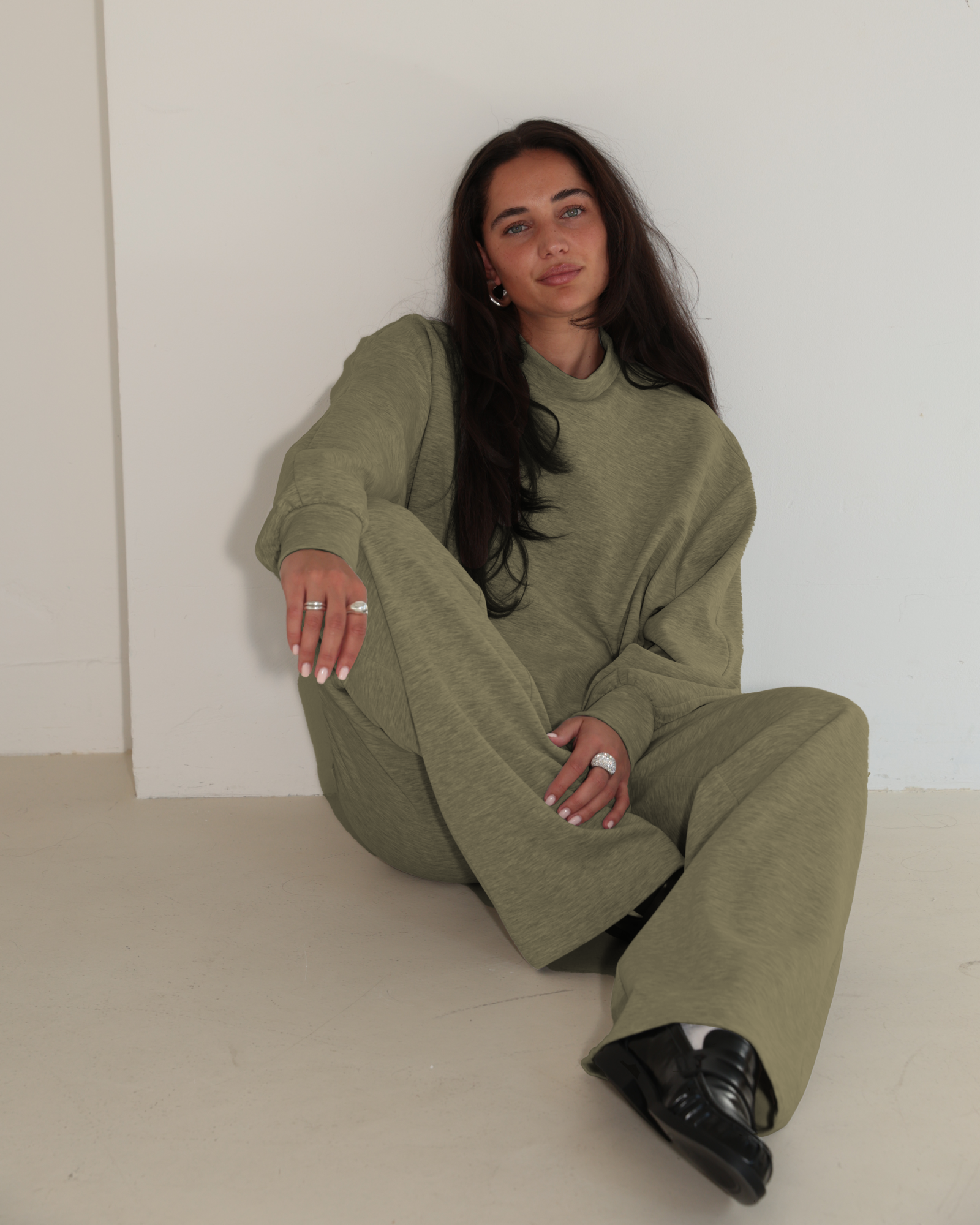 Everyone who got the grey set became obsessed, and now it’s finally available in a gorgeous green. Crafted from ridiculously soft, buttery fabric that stays just as soft after washing, this sweater feels like a dream against your skin. Pair it with the matching trousers for the ultimate set you’ll never want to take off.